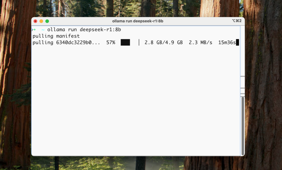 Example 2: Download and run the deepseek-r1:8b model (Note: DeepSeek R1 models on Ollama are actually distilled models)